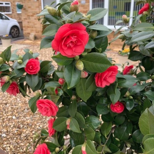 Камелия японская Леди Кэмпбелл — сочетание ярких цветов, прочной листвы и стабильного роста, которое станет настоящим украшением вашего сада.