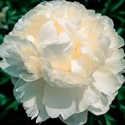 Цветы этого вида пиона отличаются махровым строением и крупными размерами: диаметр каждого цветка может достигать 25 см. Их сливочно-белый цвет с едва заметным розовым напылением излучает элегантность и изысканность. Аромат цветков пряный и насыщенный, что делает их прекрасными для срезки и создания флористических композиций.
