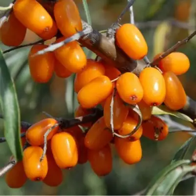 Ягоды облепихи крепко сидят на ветке, образуя скопление ярко-оранжевого цвета. Плод овальный, весом от 0,8 до 0,9 грамм. Мякоть ягод мясистая и сладкая на вкус, а по дегустационным оценкам экспертов это единственный сорт, который получил 5 из 5 баллов.