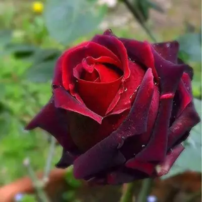 Цветок этой розы имеет уникальный черно-красный цвет, который привлекает взгляды и создаёт элегантный и изысканный образ. Кроме того, обратная сторона лепестков окрашена в более светлые оттенки, что придает ему особую привлекательность.
