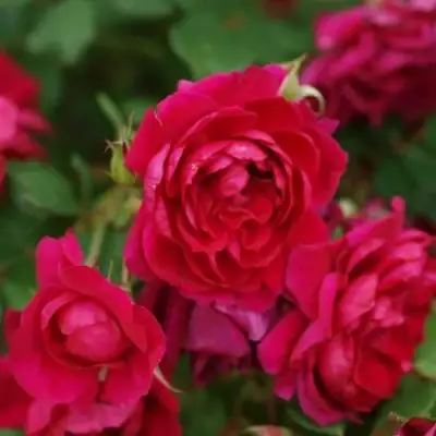 Цветки розы Квадра имеют темно-красную окраску бутона, которая со временем становится светло-красной. Форма цветка пионовидная, его размер – средний, диаметр составляет 7-8 см. Цветки обладают густо махровой структурой и состоят из 66 лепестков. Они располагаются одиночно или в соцветиях, при этом на одном стебле может быть от 1 до 4 цветков. Соцветия розы Квадра малоцветковые.