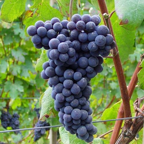 Виноград Мукузани — уникальный технический сорт, который легко выращивать в Беларуси. Срок созревания составляет 125–135 дней, что обеспечивает стабильный и обильный урожай. Грозди средние, весом около 180 г, с сочными синими ягодами. Ягоды украшают сад и идеально подходят для приготовления изысканных вин с насыщенным вкусом и богатым ароматом.