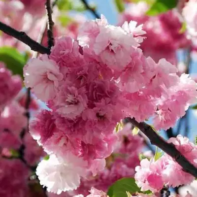 Сакура Пинк Перфекшн — это среднерослое дерево, достигающее высоты до 4 метров. У него воронковидная вертикальная крона, которая образует привлекательный силуэт и идеально подходит для создания зеленых зон и парков. Листья этого дерева остро-эллиптические, имеют дважды зубчатые края и темно-зеленый цвет, что делает их еще более притягательными в сочетании с яркими цветами.