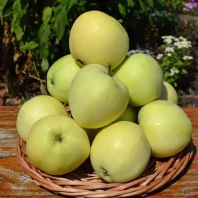 Перейдем к плодам яблони Папировка. Они имеют зеленовато-белую окраску, иногда с небольшим румянцем с южной стороны. Форма плодов кругло-коническая, с резко выраженным рубцом через весь плод. Вес плодов варьируется в диапазоне от 100 до 120 грамм, а размер средний. Кожица плодов тонкая и нежная. Подкожные точки, если они имеются, крупные и зеленоватые, иногда белые. Вкус плодов яблони Папировка кисло-сладкий, без избытка кислоты. Мякоть плодов нежная, белая, крупнозернистая и рыхловатая. Есть легкий аромат, который добавляет особую нотку вкусу плодов. При этом, яблоня Папировка обладает хорошей лежкостью, достигая 15-20 дней.